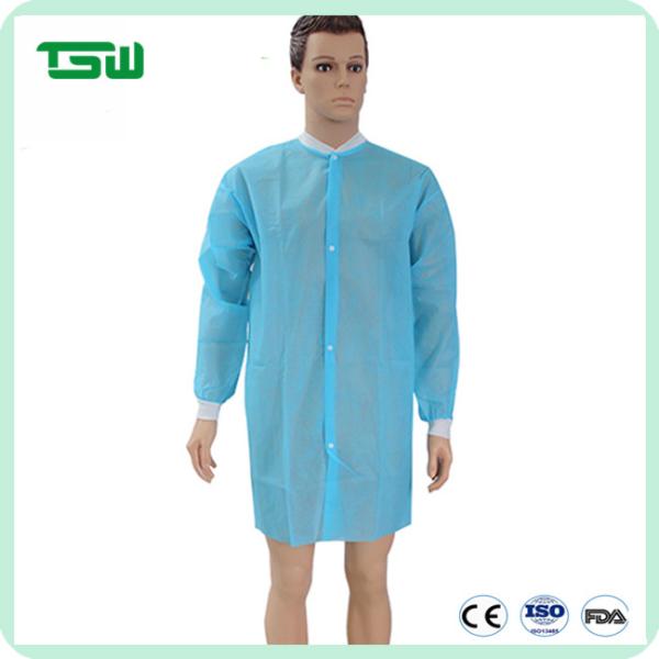 FDA Unisex 25G Disposable Blue Lab Coats With Knitted Cuff Images |